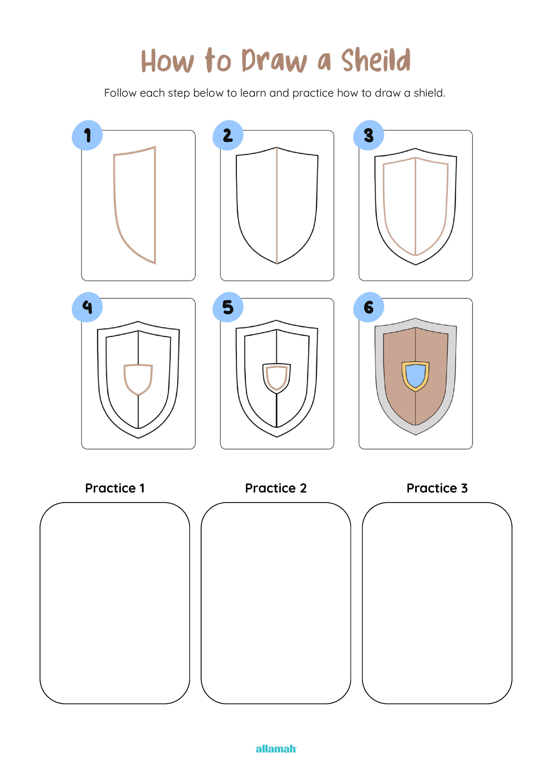 Another art-based activity that allows children to learn how to draw a shield. Parents or educators can link this to Islamic history, such as the battles faced by early Muslims and lessons of courage and protection of the community.