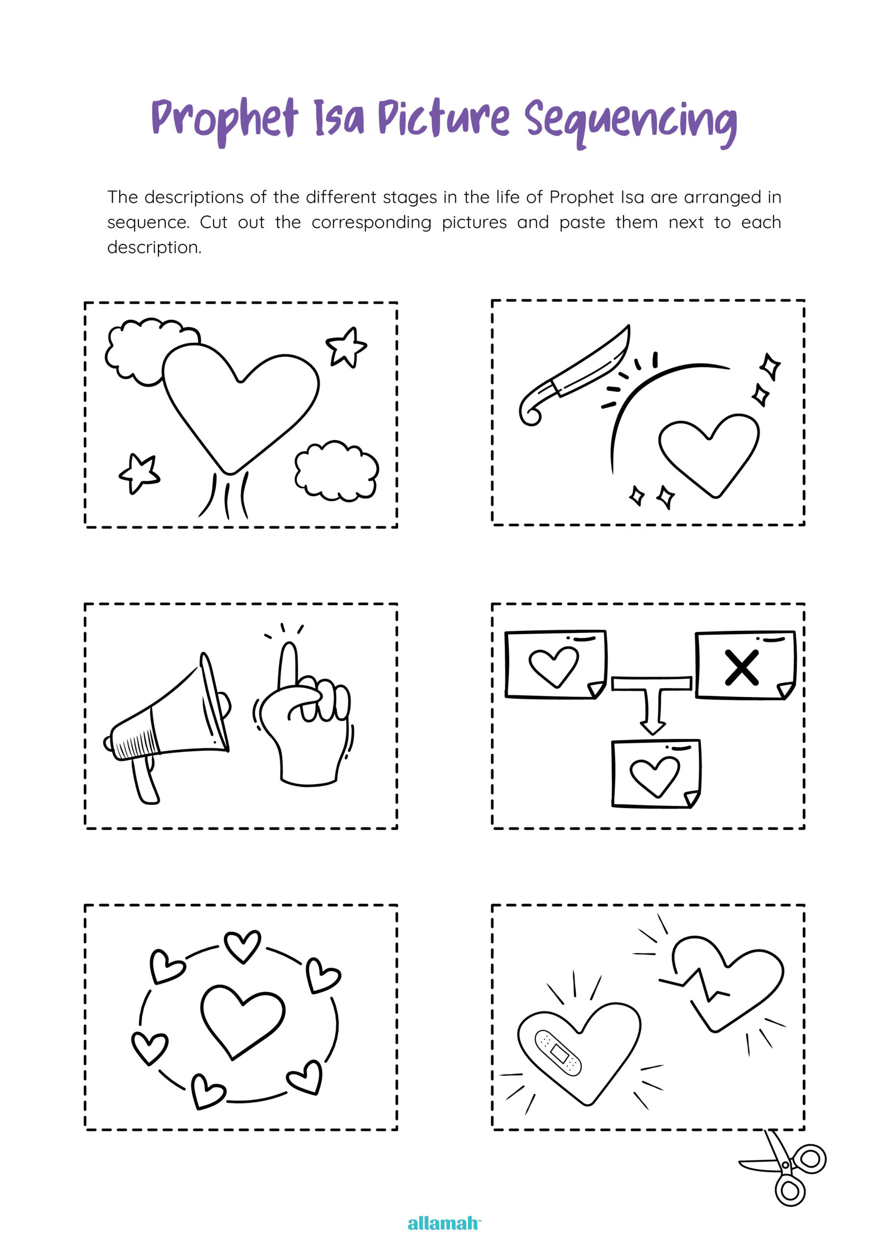 Children arrange the main events of Prophet Isa’s life: his miraculous birth, miracles by Allah’s will, his disciples, people’s attempts to harm him and his ascension. It teaches Allah’s power, Prophet Isa’s role as a Prophet and the belief in his return before the Day of Judgement.