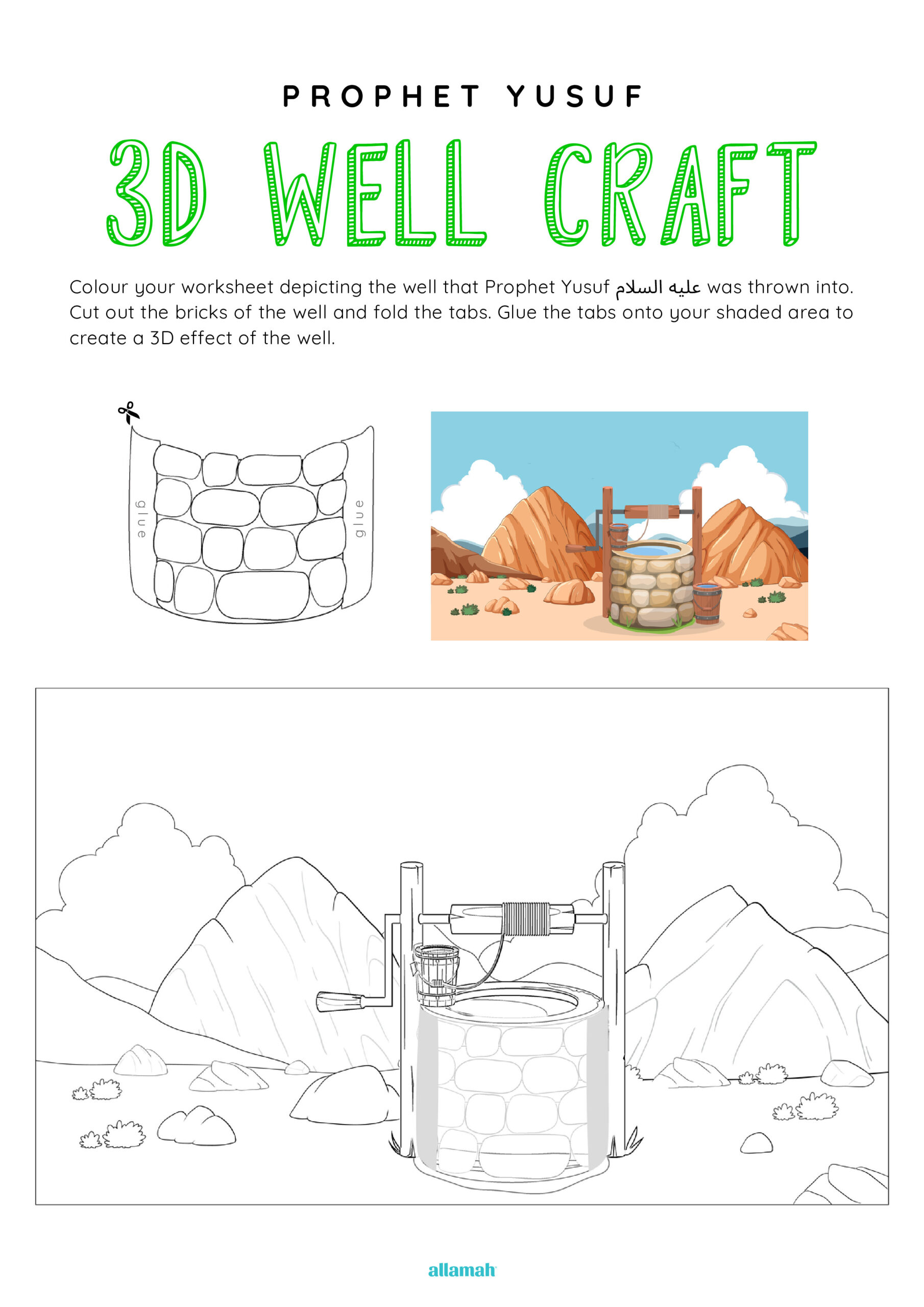 A creative 3D craft where children build a model of the well Prophet Yusuf عليه السلام was thrown into. Reinforces the lesson of patience, resilience and Allah’s plan through a hands-on activity.
